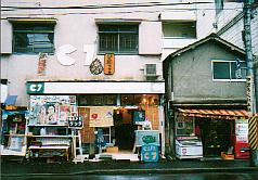 カフェC7外観。右隣は現役の駄菓子屋さん。