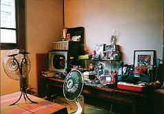 戦前からある町屋を使ったカフェでの展示、それが決まった時点で、私はそれを「なつかしさ」をテーマにしたものにしようと思いました。カフェに飾られている、いわゆるなつかしものを見、手でふれるにつけ、それはもう私には必然のように思われたのです。 2003.10.14 門脇 篤