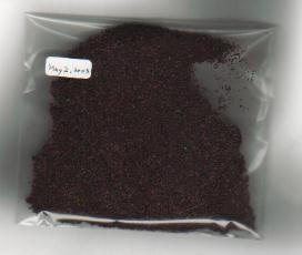 毎日、飲んだコーヒーの豆を乾かし、日付をつけてビニールの袋に入れたもの