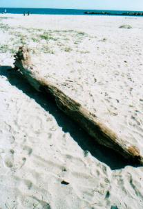 | 流木を拾い終えて戻って来ると、私の車のまわりに猫がたむろしていた。猫好きであることは車を見ただけでもわかるのだろうか。まっくろくろの黒猫くんなどは、こっちがよけて通るものと、まったくひかれる心配もせずに最後まで寝ころがっていた。 |