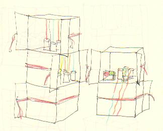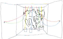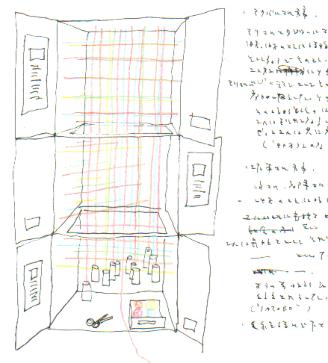wide web)"の原初的なかたち、あるいは仮想空間に対する実在性としてのそれとしてとらえなおすことができるかもしれません。個人という縦糸と、社会という横糸を、毛糸という実にアナログな素材を用いて提示するというこの試みは、あまりに率直な比喩ではあれ、アナログであるがゆえによりいっそう力強く象徴的であり、素朴であるがゆえにある種得がたい美な存在として、作品化できるのではないかと思います。
