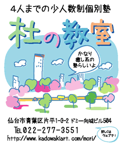 4人までの少人数制個別指導学習塾 仙台・杜の教室 仙台市青葉区片平1-3-2 ドミー向城ビル504 080-4357-7035 kad@kadowakiart.com