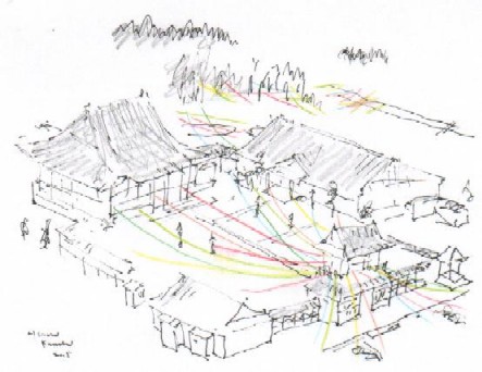 三門から種をまく 作品制作意図 春の訪れを告げる「苗市」は、種や苗を買いもとめる場というだけでなく、それを育て、それが育っていく、ものごとの生成から終焉までをもふくめた全体として、それを今ここから見守っていこうという態度、未来や将来へと意識を向かわせる姿勢、まさに「春」を象徴する場と言えると思います。 |
