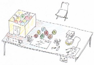4.「くりんこくん(仮称)〜小布施と仙台を結びます〜」と「谷脇アート街道(仮称)」 仙台と小布施の子どもに、くりのかたちに切り取った画用紙をわたし、「くりんこくん」という言葉から連想される絵や何かを描いてもらったり、くりそのものを描いてもらったり、くりのお面をつくってもらったりし、仙台の子がつくったものと小布施の子がつくったものを1セットにして毛糸で結ぶ。できたものを小布施のいろいろな場所に展示してもらう(例:ボンネットバス「おぶせ浪漫号」の窓、レンタサイクルの前カゴ、長野鉄道の窓、小布施の町中のお店、特に栗菓子屋さんや銀行、ふつうのお家などなど)。くりの裏面や余白などに「境内アート苗市」の宣伝や毛糸投げのおさそい、宮沢さんのラジオの周波数と「ラジオをもってお寺へGO!」などを書き込み、あわせて宣伝にも使う(私の塾の生徒につくってもらった試作品はこちら)。 |