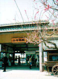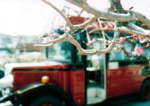 | 仙台発6:04の新幹線に乗り、大宮のりかえで長野に着いたのが9:48。すぐに9:54の長野電鉄に飛び乗って、小布施に着いたのは10:28。実にいい陽気で、駅の建物の中にあるフリー・スペースでは、小学生の女の子たちがお花を活けている。ときおり下のようなレトロなバスが発着し、観光客たちを乗せてゆく。 |