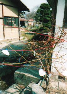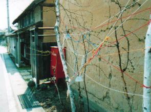 私がロータリーの設置をしている間、地元の方の協力を得て、メイン会場である玄照寺までの道すじのあちこちに、この「くりんこくん」を設置してもらう。みなさん実にうまいことやっていて、しかも手際がいい。