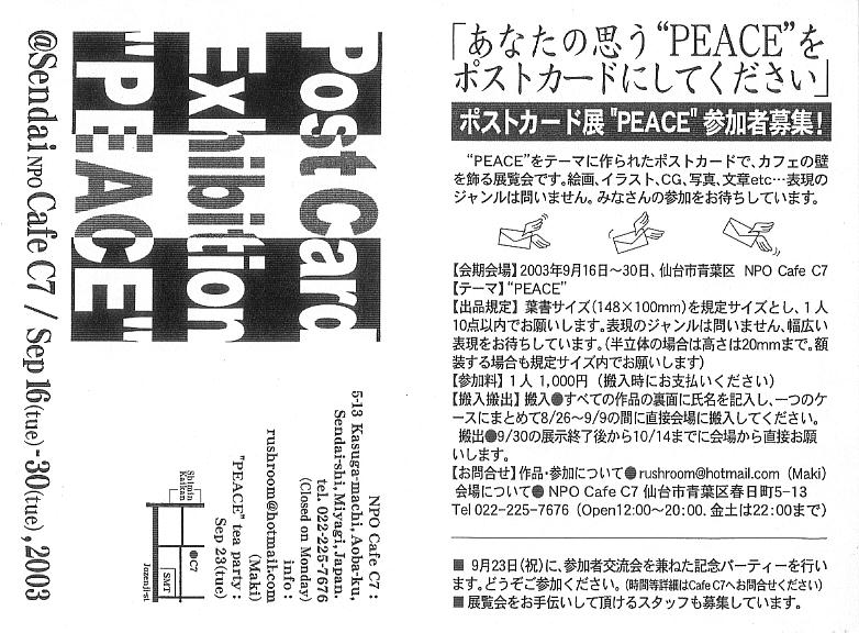 和カフェC7で2003年9月16日〜30日の間に行われるPost Card Exhibition "PEACE"に出品するもの。