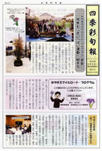 第1号 平成14年11月22日発行 ・地域の広報誌「四季彩旬報」発刊される ・理事長のひとりごと ・第九回四季彩ミニ講座 「助成パワーで街を活性化」 ・花いっぱい運動で「美しいまちづくり」