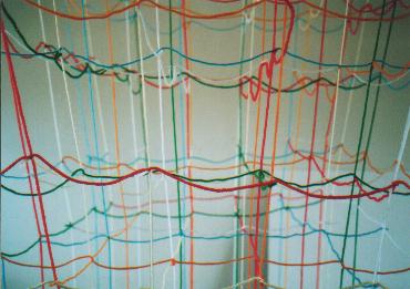 毛糸を結ぶ、というこの一連の展示の出発点となったのは、『SATOKO』という1枚のCDです。それは、89年11月、オウム真理教によって殺害された坂本さとこ都子さんが、生前にのこした短い詩に、その友人であった中村裕二弁護士が加筆、シンガーソングライター国安修二氏によって曲がつけられたものです。