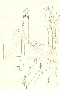 アンケート調査カード 毛糸や虹など、展示作品に関連性のある言葉について、どのような個人的なイメージをもっているか、また母国語にはどのようなイメージが含まれていると思うかというアンケートを行いたいと思います。アンケートはカード大の用紙に印刷され、ビニールに入れられてアーケードの柱など展示場所に置かれ、記入後はそれも展示物のひとつになり、それらを読むことで生まれる新たな視線は、作品をより深いものにしていくことでしょう。 質 問 |