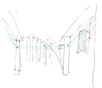 A旧標本館に毛糸を結ぶ。 旧標本館は、昨年から今年にかけ、改修工事が行われ、「再生」された建物です。その改修にあたっては、現状を忠実に伝えることが最優先されたため、新築よりもずっとコストがかかったと聞いています。私はたまたまこの建物のレンガ「再生」を担当したタイル・メーカーでアルバイトをしていて、今回TANABATA.orgでこの場所を、しかも「再生」をテーマに行うということをお聞きし、その偶然にくらくらするほどでした。そこで、この「再生」を象徴するような建物に、ぜひ毛糸を結びつけたいと思いました。それはすこし奥まっている多元研への導線の役割をも果たすと同時に、サンモールからつづく通りの並木に結ばれる毛糸ともつながっています。