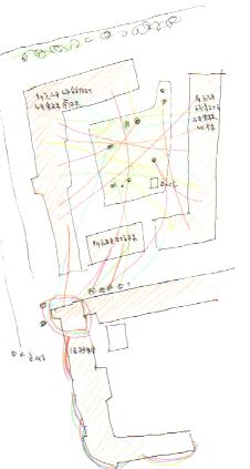 3.片平キャンパス 北門〜旧標本館〜多元研中庭へと毛糸を結び、導線とする。