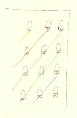 毛糸を結ぶとき、私はすでにそこにあるものに結ぼうとしていることに気づく。考えてみると、新しく何か支持体を立てるなりつけるなりすれば、どのようにでも毛糸を展示できるのだが、わざわざ結びつけるものを用意することなく、そこにあるものにいかに結びつけるかを、私が考えているということに私は気づいた。別にそれが何かを意味している、というのではなく、ただ私はそれを無意識にひとつのルールとするゲームを行っているのだ。だから私でない誰かが同じようなことをするときには、そこにあるものにしか結んではいけないのだろうか、といった質問をするかもしれない。そうしてはじめて私はやっとそれが規則だったことに気づくわけだ。それまで私はそれに気づくこともなく、それにしたがっている。何とも奇妙なことであり、そして何とも自然なことである。