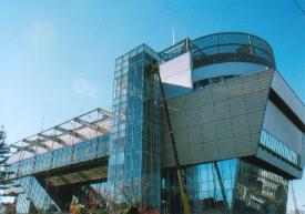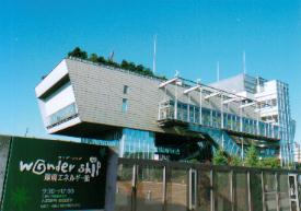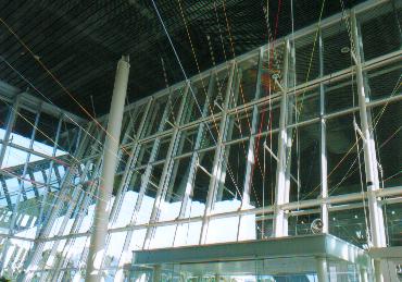 東京湾に向かって立つ、まさに箱舟のような東京ガス・環境エネルギー館「ワンダー・シップ」の姿を見た時、私は言い知れぬめぐり合わせのようなものを感じました。というのも、私はこれまで色とりどりの毛糸を虹に見立てて、「虹をつくる」「虹の通り道」といった作品を制作してきたのですが、西洋では虹は、ノアがその方舟によって大洪水の難をのがれた後、神から人類に与えられたメッセージ、すなわち、増えすぎて乱れた人の世を洗い流したこのような天災を、もう二度と再び起こすことはないという約束であると聞いていたからです。
