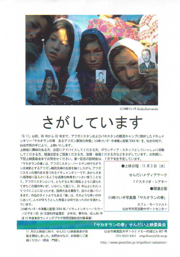 「ヤカオランの春」せんだい上映会 上映会までのスケジュール