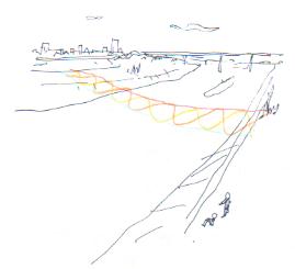 いずれ仙台市中心部を流れるあたりの広瀬川にも「橋」をかけてみたいと思っている(下はイメージ図)。