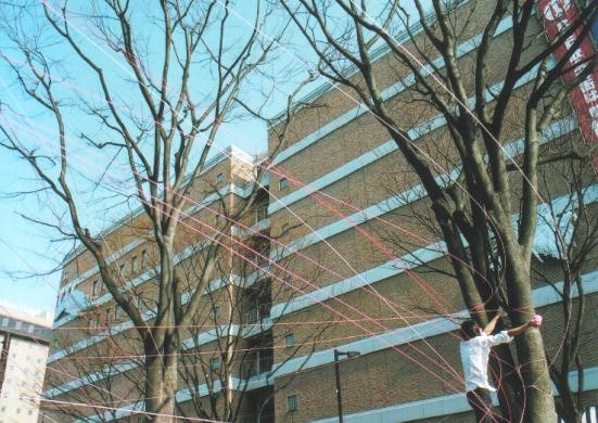 都市における参加型アート作品として、本作品の制作においては、市民参加による共同制作方式を採用しました。公募で集まった若者たちは、共同制作の過程において、これまで体験したことのない充実感を覚えたとの感想を口々に述べました。それは「これをつくったからといって、何か得するわけでもないのに、それでも一生懸命取り付かれたように制作に参加してしまいました。こうした感覚は、これまで味わったことのないもので、おそらくアート以外ではなかなか体験できないものではないでしょうか」といったもので、これはアートが単純な経済原理による勝者/敗者といった論理に立つことなく、人と人とを結びつけ、その関係性を再認識・再評価していく役割、あるいはアートが社会における福祉的な役割を担う可能性が十分にあることを示唆するものではないかと思います。このプロジェクトを通じて、「アートによる公共事業」のようなものを考えてみたいと考えています。