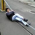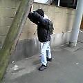 ←地震のときにそなえて電柱を支える訓練。けっこう役に立つかも?