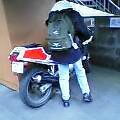 ←次に不審なバイクを点検。しかし最近はさわっただけで防犯ベルのなるバイクもあるからたちわるいよね。