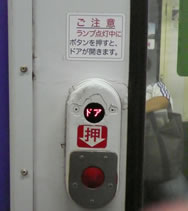 ↑列車の中にあるドア開閉ボタン。