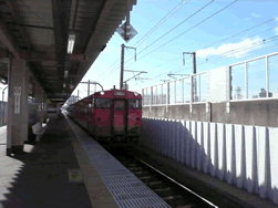 ↑キハ40・48改造のお座敷列車、「ふるさと」。暗い…