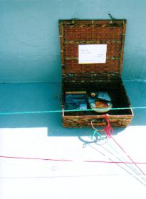 「かばんを開けてください」という指示にしたがうと、中にはCDプレーヤーが。ヘッドフォンから流れる曲"SATOKO"は、オウム真理教による坂本弁護士一家殺害事件の被害者、坂本都子(さとこ)さんがのこした詩に、弁護士中本裕二氏が「つづき」を書き、シンガーソングライター国安修二氏が曲をつけたもの。