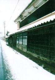 谷脇街道沿いの建物と、これを玄照寺へと導く毛糸のイメージ |