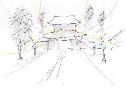 三門から種をまく 作品制作意図 春の訪れを告げる「苗市」は、種や苗を買いもとめる場というだけでなく、それを育て、それが育っていく、ものごとの生成から終焉までをもふくめた全体として、それを今ここから見守っていこうという態度、未来や将来へと意識を向かわせる姿勢、まさに「春」を象徴する場と言えると思います。 |