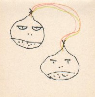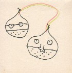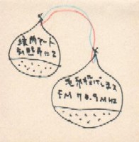 4.「くりんこくん(仮称)〜小布施と仙台を結びます〜」と「谷脇アート街道(仮称)」 仙台と小布施の子どもに、くりのかたちに切り取った画用紙をわたし、「くりんこくん」という言葉から連想される絵や何かを描いてもらったり、くりそのものを描いてもらったり、くりのお面をつくってもらったりし、仙台の子がつくったものと小布施の子がつくったものを1セットにして毛糸で結ぶ。できたものを小布施のいろいろな場所に展示してもらう(例:ボンネットバス「おぶせ浪漫号」の窓、レンタサイクルの前カゴ、長野鉄道の窓、小布施の町中のお店、特に栗菓子屋さんや銀行、ふつうのお家などなど)。くりの裏面や余白などに「境内アート苗市」の宣伝や毛糸投げのおさそい、宮沢さんのラジオの周波数と「ラジオをもってお寺へGO!」などを書き込み、あわせて宣伝にも使う(私の塾の生徒につくってもらった試作品はこちら)。 |