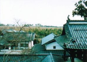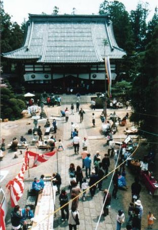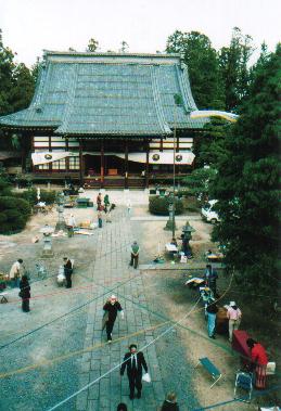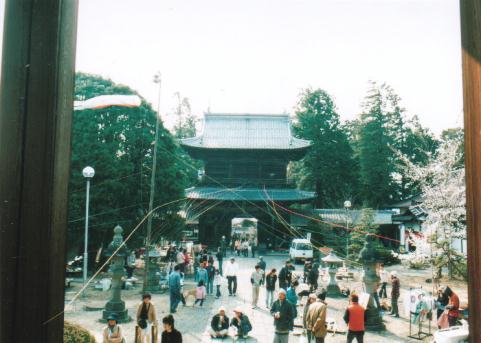 三門の上から本堂をのぞむ。
