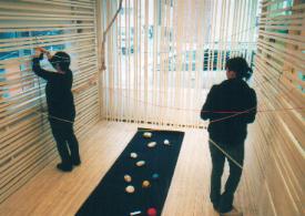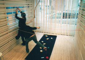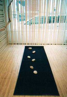 二日目朝。前日の展示を撤去し、流木を使って新たな展示をつくる。3時くらいまで誰ひとり現れず、夕方からは「共同制作」のために撤去するので、これは誰の目にもふれずに消滅してしまうのだなぁと思っていると、ひとりふたりくらい来てすこし安心する。