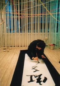 書と毛糸。会場は和の雰囲気につつまれた。こうして2日目もふけていく。