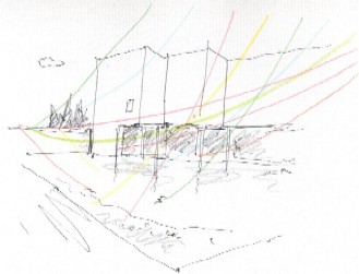 展示イメージ @「美術館に虹をかける」 東山魁夷館中庭 1/9-10にかけて、「公開制作」として展示作業を行う。