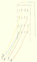 毛糸を結ぶとき、私はすでにそこにあるものに結ぼうとしていることに気づく。考えてみると、新しく何か支持体を立てるなりつけるなりすれば、どのようにでも毛糸を展示できるのだが、わざわざ結びつけるものを用意することなく、そこにあるものにいかに結びつけるかを、私が考えているということに私は気づいた。別にそれが何かを意味している、というのではなく、ただ私はそれを無意識にひとつのルールとするゲームを行っているのだ。だから私でない誰かが同じようなことをするときには、そこにあるものにしか結んではいけないのだろうか、といった質問をするかもしれない。そうしてはじめて私はやっとそれが規則だったことに気づくわけだ。それまで私はそれに気づくこともなく、それにしたがっている。何とも奇妙なことであり、そして何とも自然なことである。