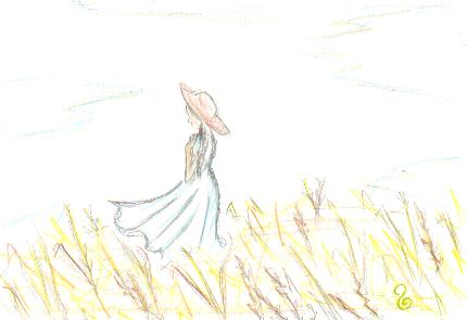 吹奏楽部の中学2年生まなみちゃんがかいてくれたのは、草原に立つ少女。実りの秋のようです。