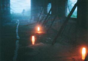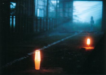 2004/6/20 夕暮れどきの牧場跡に向かう。霧が濃くたちこめて幻想的だ。あたりはまるで早朝のようにほんのり明るい。