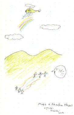 ヘリコプターや飛行機から水を散布し、虹をつくる。